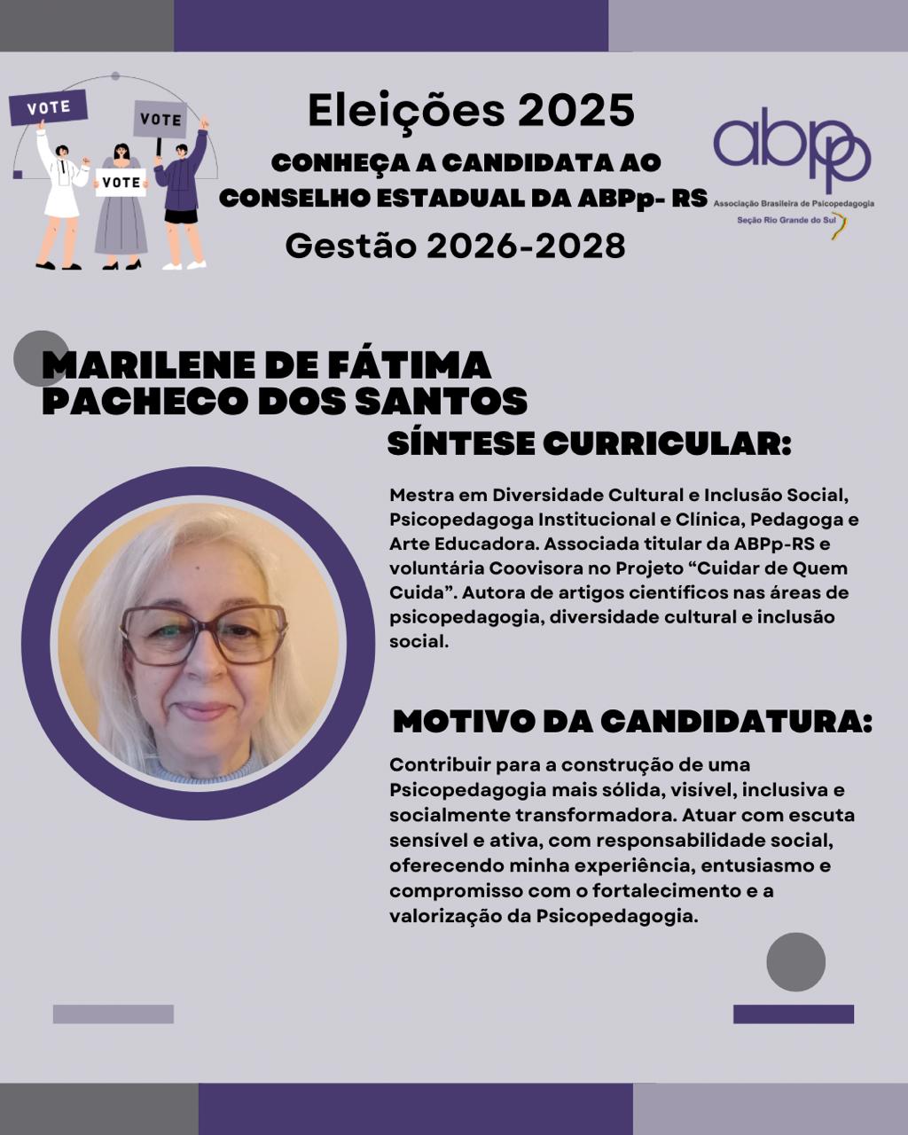 ABPp-RS 2025_Eleições_Candidata Marilene de Fátima Pacheco dos Santos