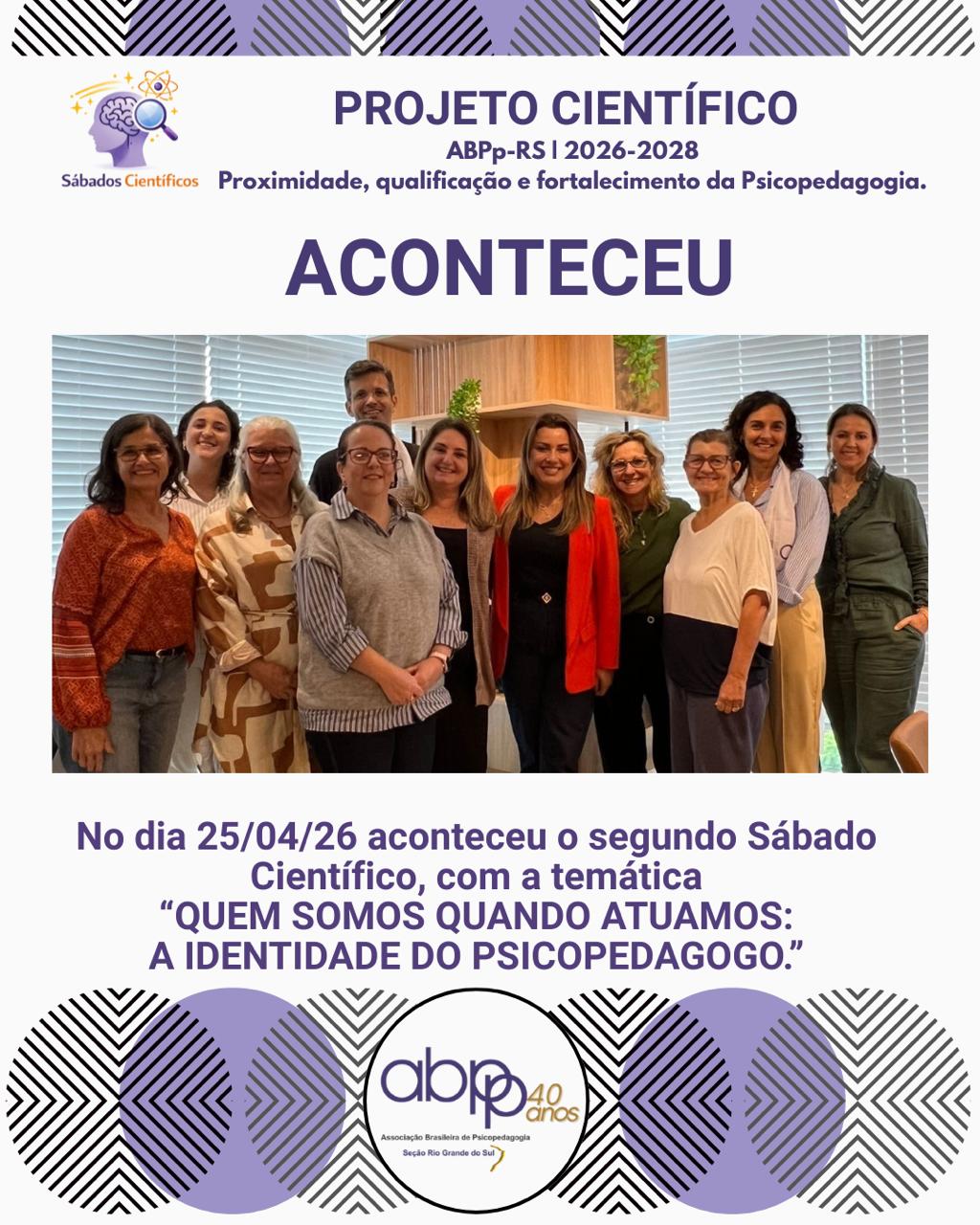 ACONTECEU | SÁBADO CIENTÍFICO |ABPp-RS | QUEM SOMOS QUANDO ATUAMOS: A IDENTIDADE DO PSICOPEDAGOGO