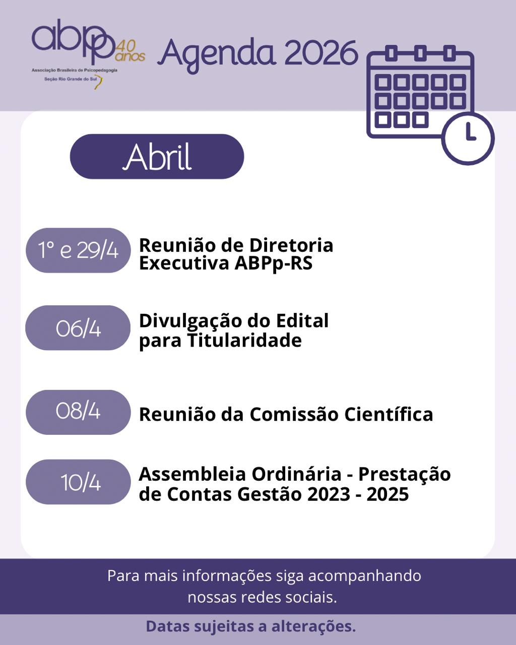 AGENDA ABPp-RS| ABRIL 2026| 1ª parte