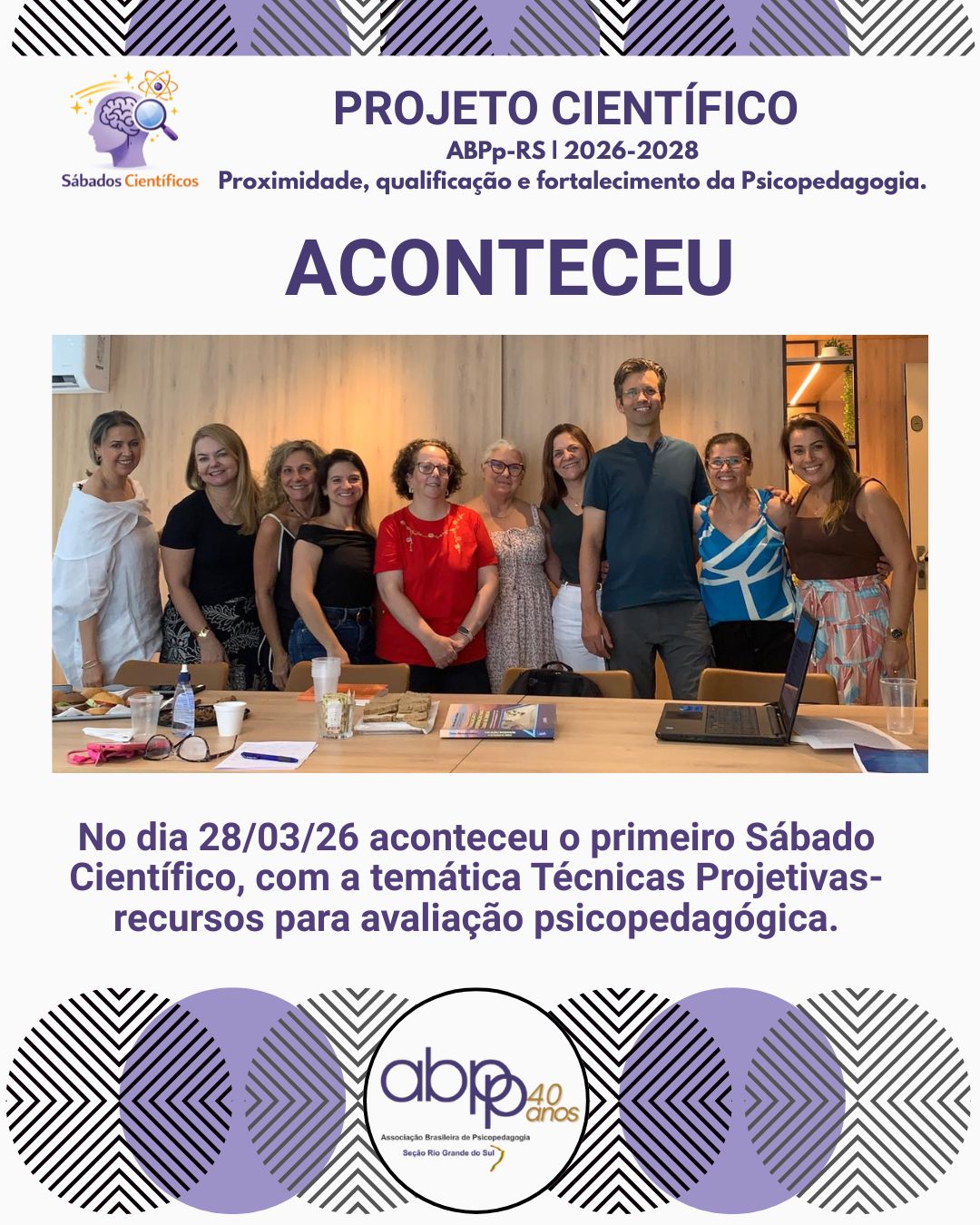 No dia 28 de março de 2026, realizamos o primeiro Sábado Científico da ABPp-RS, dando início a um ciclo de encontros pensado para fortalecer, qualificar e aproximar a Psicopedagogia.